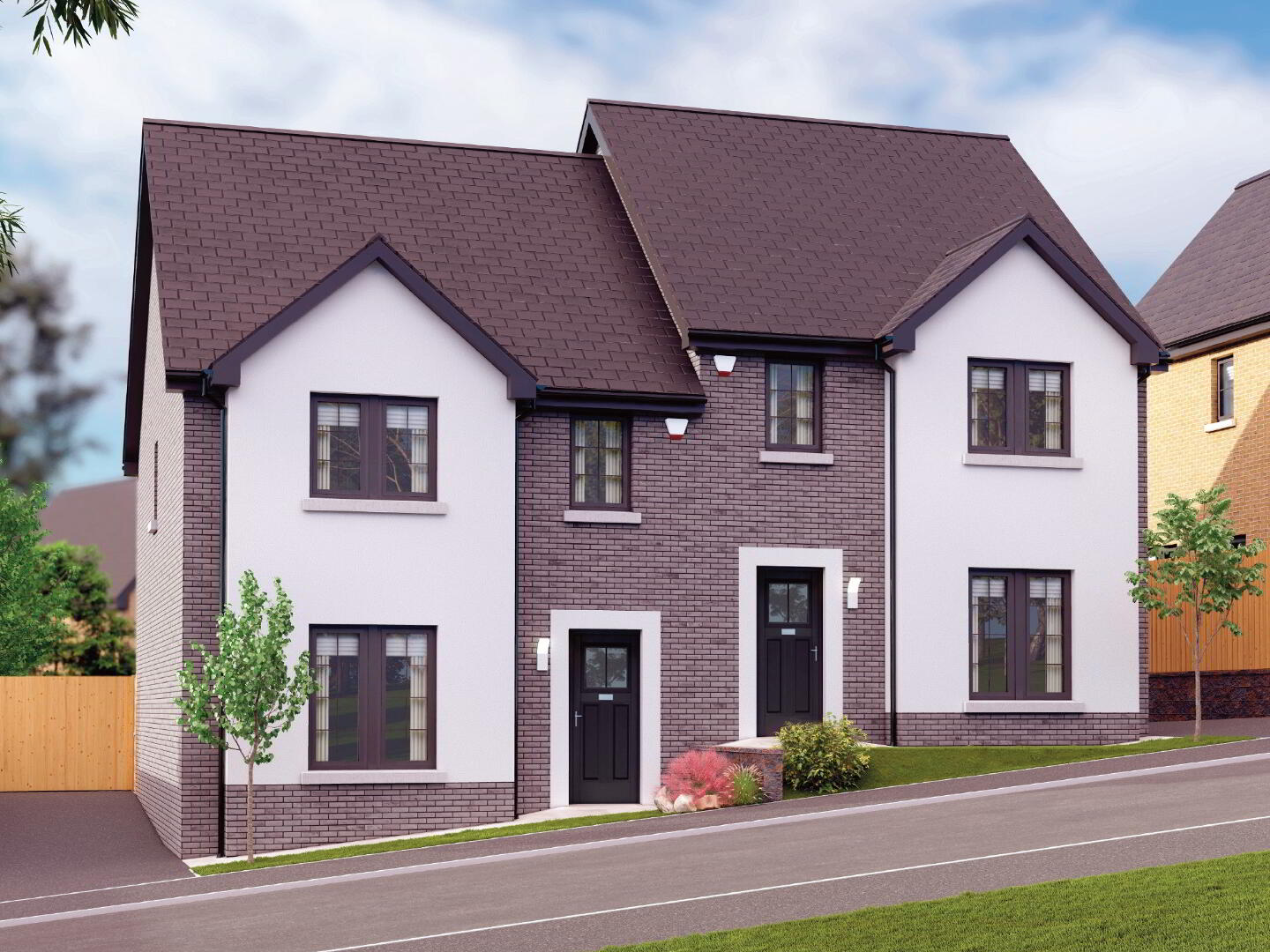 Your new home is crafted using traditional, proven cavity wall construction for durability and thermal efficiency. The external finish features a blend of brick and/or plaster render, while external timber elements are painted in a coordinated palette to enhance the architectural design. The roof is topped with dark, flat concrete tiles, crowned by a dry fixed ridge tile for a sleek, modern finish.